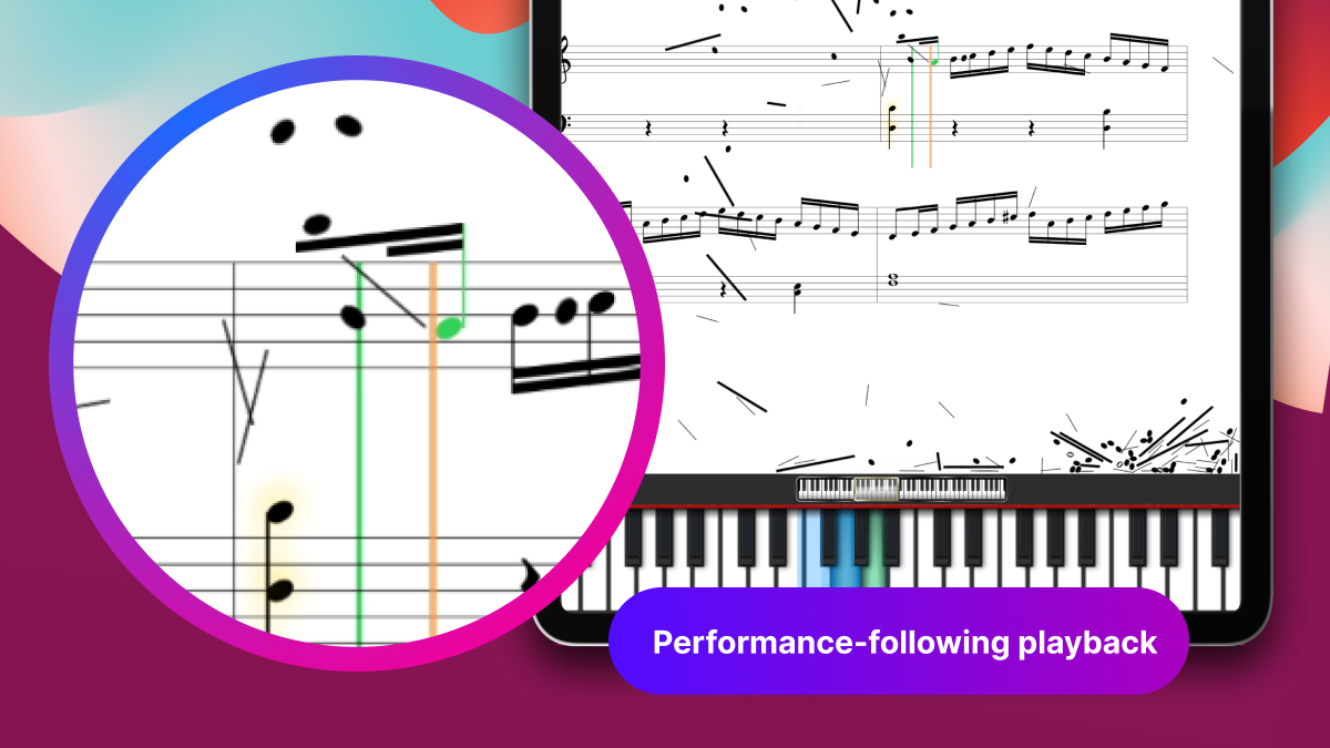 When a musician plays with one hand, the system automatically follows and performs the complementary part, enabling focused one-hand practice while preserving the full musical context. As notes are played, they visually disappear from the score with a subtle physics based animation, reinforcing progress and giving a clear sense of accomplishment. Combined with automatic page turning and real time synchronization, this creates a smoother, more engaging, and more rewarding practice experience.