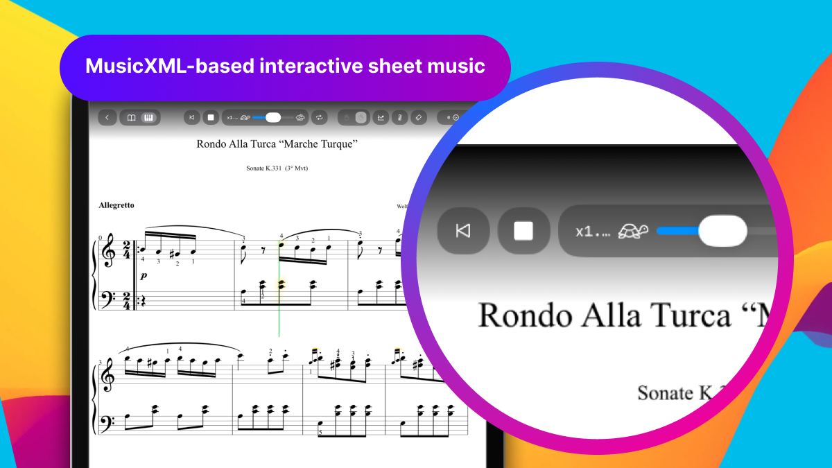 Unlike traditional PDFs, Piascore’s MusicXML-based scores allow musicians to actively control their music. Users can play back audio aligned with notation, freely adjust tempo, transpose keys, and engage with the score in a responsive, dynamic environment.